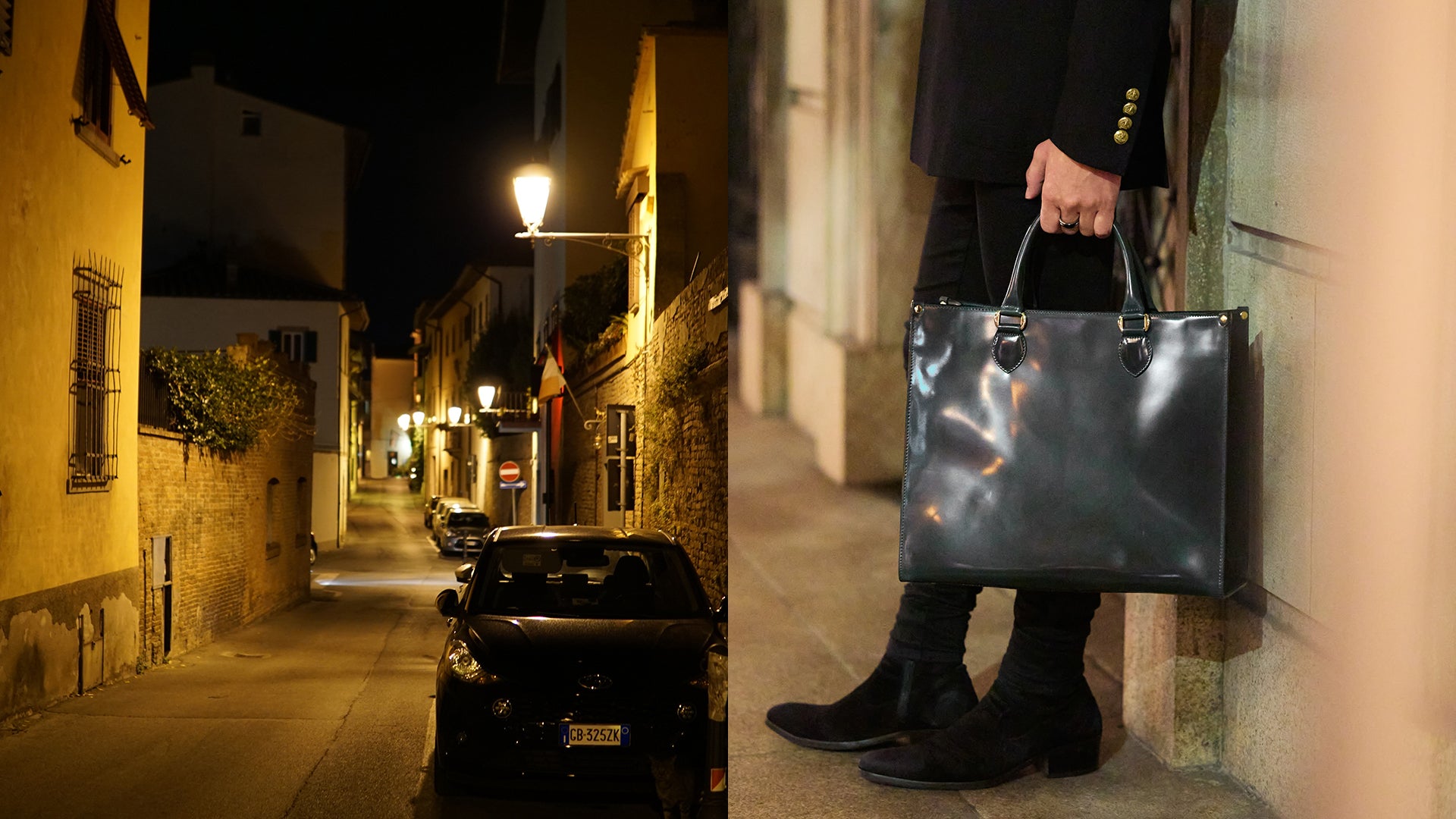 Roberto Gは、コードバン専門のブランドで、染料だけを使用して仕上げられた深い色味と透明感のあるツヤ、そして時間をかけて脂をたっぷりとしみ込ませて実現したしなやかさと優しいタッチ感が魅力の極上の素材を提供しています。受注生産で作成されるバッグは、希少な素材の中でも限られた枚数しか取れない大きなコードバンを贅沢に使用しており、トートグランデなどは他社では真似できない特別なアイテムとなっています。